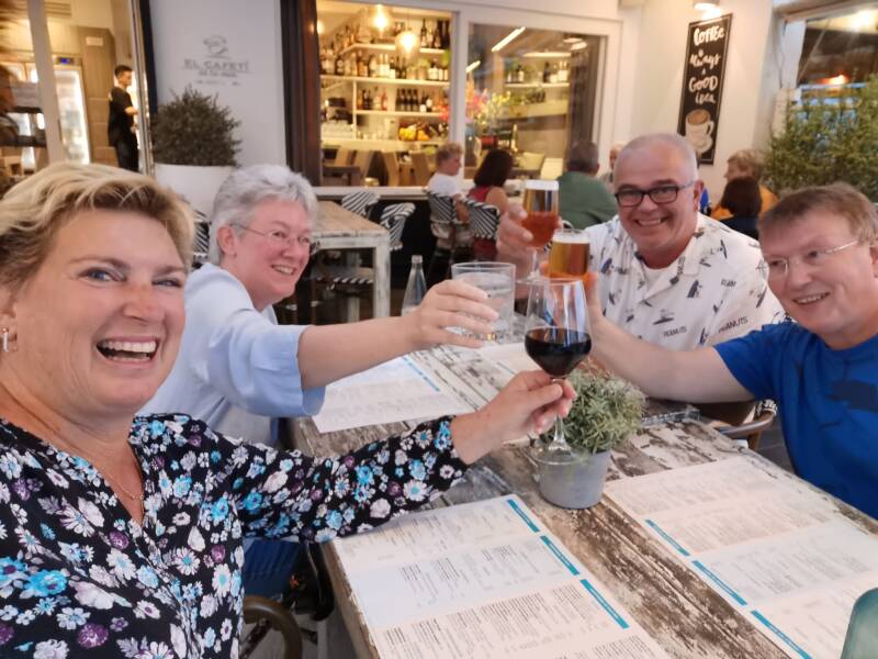 Op maandag 10 oktober hebben we samen 's avonds met de onze (motor)vrienden gegeten in Moraira. Ook een mooie afsluiting voor Bertus, want zijn vakantie loopt ten einde. Dinsdag vertrekt hij weer naar Nederland. De 3 weken zijn om gevlogen, ik moet nog een tijdje voordat ik naar huis ga.