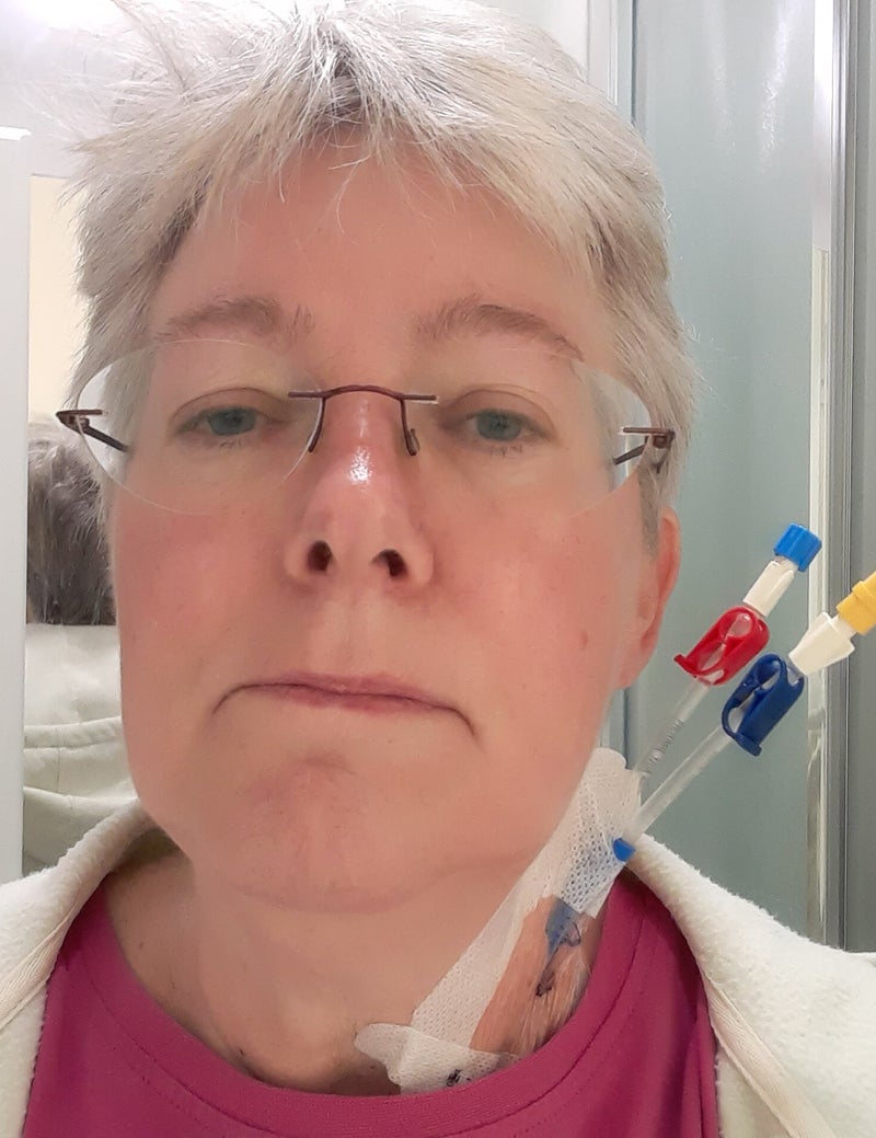Je voelt het wel zitten, het is wat stijf en het slikken gaat ook wat moeilijker. Dokter F. geeft aan dat als het pijnlijk wordt ik dit moet aangeven, hebben ze wel medicijnen voor. Ook het draaien van het hoofd is beperkt door de verschillende slangen die er in zitten. Na terugkomst hebben ze de predkuur via de neckline ingebracht. Het schilt dat ze dan niet meer hoeven te prikken voor het infuus. Morgen gaan ze de stamcellen verzamelen met een soort dialyseapparaat. Zo nu lekker rusten. Maar na een tijdje ging het steeds meer pijn te doen. Het zat te strak. Een zuster gebeld en met de translater (wat ben ik blij met die uitvinding) uitgelegd dat het te strak zat en daardoor pijn deed. Ze bekeek het en liep weg. Na een paar minuten was ze weer terug. Ze heeft de pleister verwijderd en een nieuwe geplaatst dat niet zo strak meer in de hals zat. Je voelt het wel maar is nu niet meer zo pijnlijk.